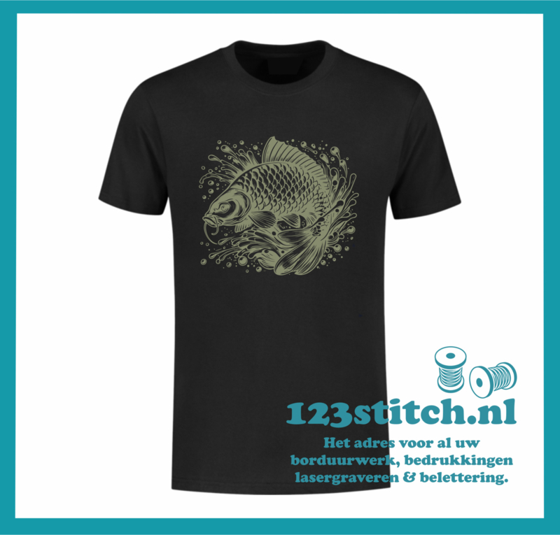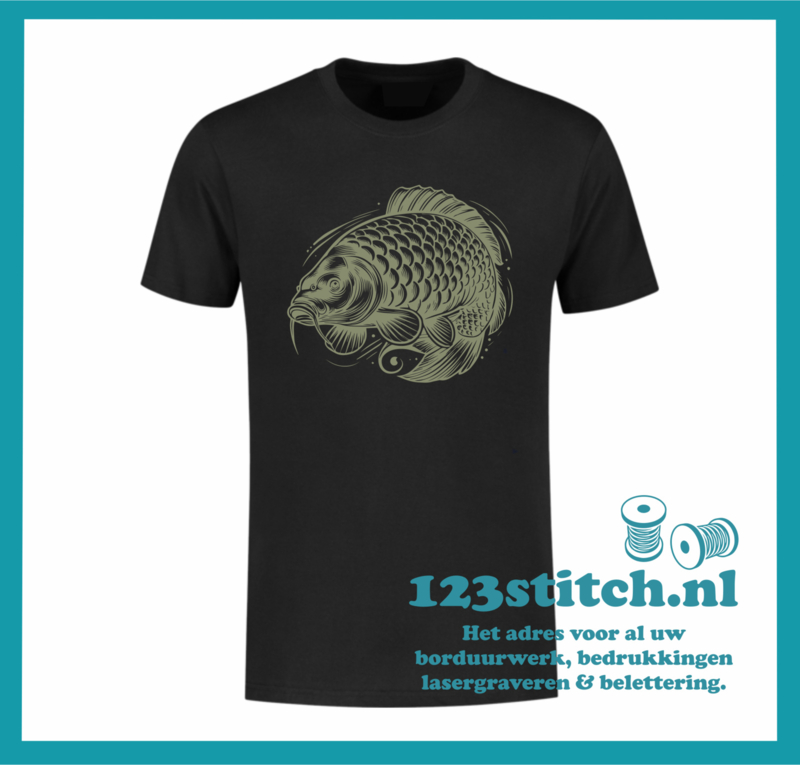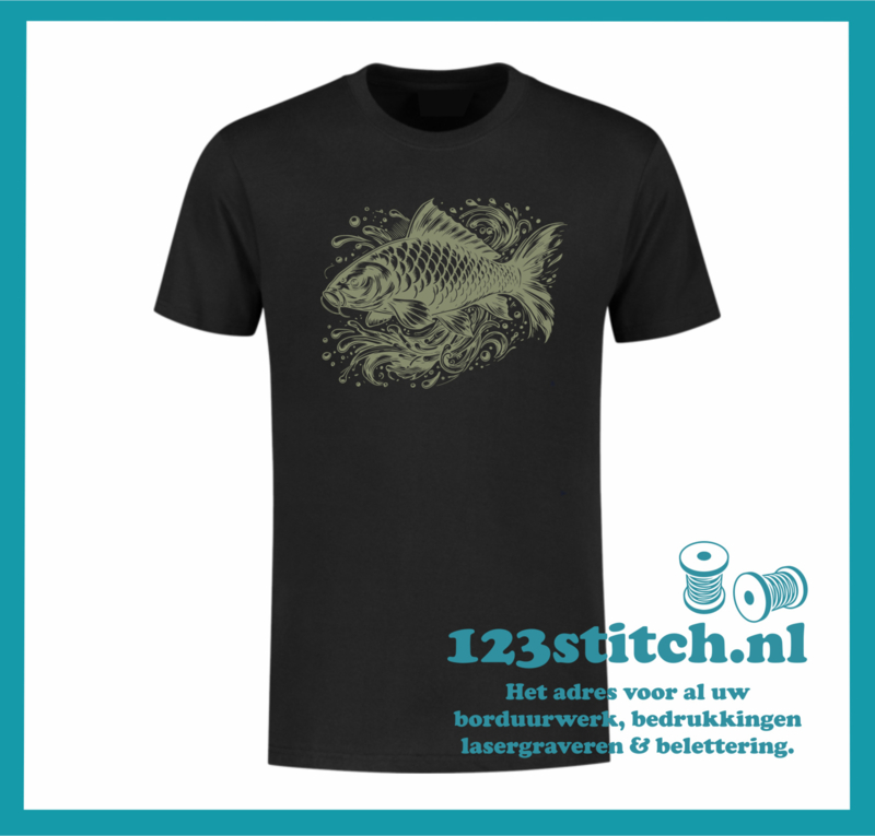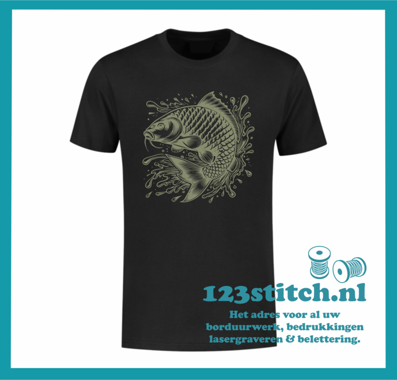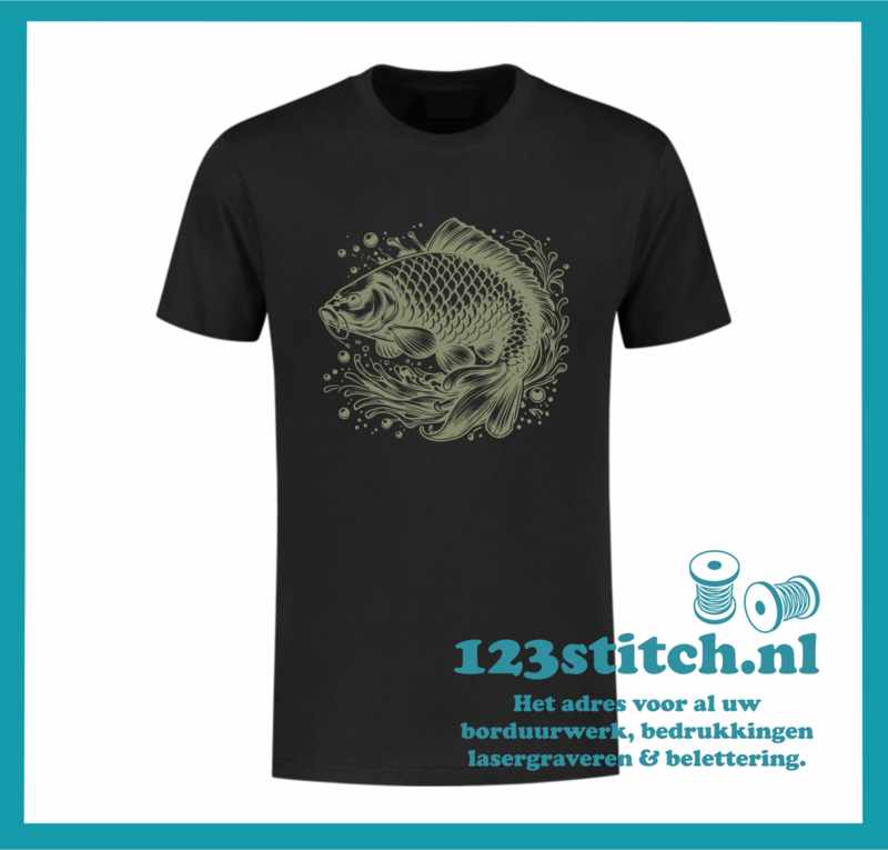 Laat je passie voor karpervissen zien met dit stijlvolle T-shirt! Gemaakt van hoogwaardig katoen en bedrukt met een gedetailleerde karper afbeelding. Perfect voor aan de waterkant of gewoon casual in je vrije tijd.